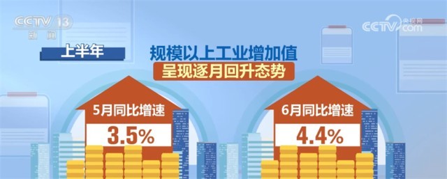 數據二:增長3.8%。工業和信息化部7月19日介紹,隨著3月份以來一批穩經濟政策效果持續顯現,今年上半年,我國規模以上工業增加值同比增長3.8%,工業經濟恢復向好。其中,5月、6月當月同比增速分別為3.5%、4.4%,呈現逐月回升態勢。工業投資保持擴張,上半年同比增長8.9%,增速較一季度加快0.3個百分點。