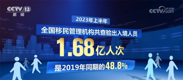 數據四:1.68億人次。國家移民管理局7月19日發布數據,2023年上半年,全國移民管理機構共查驗出入境人員1.68億人次,是2019年同期的48.8%。