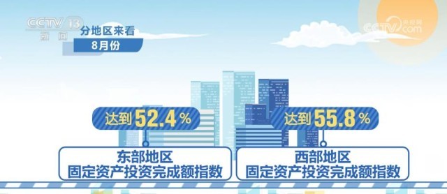 8月份,固定資產投資完成額指數為50.6%,2023年2月份以來一直呈擴張態勢。分地區來看,8月份,東部和西部地區固定資產投資完成額指數分別達到52.4%和55.8%。
