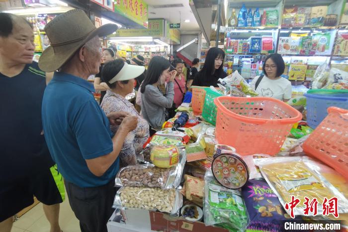 近日,東興國門景區里的東南亞特產商鋪受游客青睞。 中新社記者 翟李強 攝