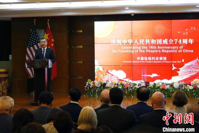 中新社紐約9月14日電 (記者 王帆)中國駐紐約總領館當地時間13日晚在紐約舉行慶祝中華人民共和國成立74周年招待會,領區政商學媒等各界代表近400人出席。