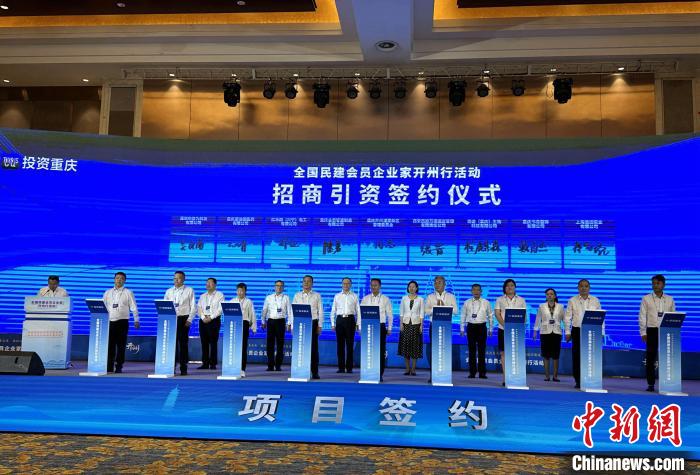 圖為全國民建會員企業(yè)家開州行活動招商引資簽約現(xiàn)場?!≈行戮W記者張燕 攝