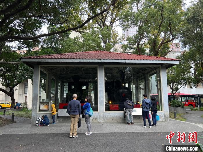2024年1月1日,“臺灣鐵路股份有限公司”正式掛牌運營,臺當局交通事務主管部門下設的行政機關“臺灣鐵路管理局”轉型為公營企業。圖為游人當天在距臺北車站不遠處的一個公園里,參觀園內展示的臺灣鐵路第一號蒸汽機車“騰云”號及第九號蒸汽機車。中新社記者 路梅 攝