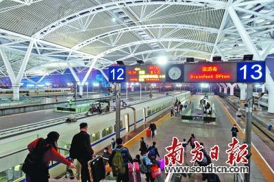 根據務工流、學生流、探親流和返鄉流情況,為滿足旅客出行需求,廣鐵集團春運期間計劃加開427趟夜間高鐵,可增加約24萬人次的運力,主要開往武漢、成渝、南昌等客流熱門方向。(記者/劉倩 實習生/鄭欣怡 通訊員/吳天龍 李凱悅)