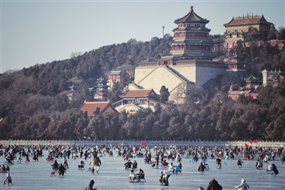 在頤和園,也有不少游客到冰場游玩。頤和園冰場是市區(qū)內(nèi)最大的冰上樂園,天公作美,今年冬天湖面結(jié)冰早于往年,冰場超長“待機”,開放了36天,橫跨“元旦”“春節(jié)”兩個小長假。15萬名游客體驗了頤和園萬米大冰場的速度與激情。“在這里不僅可以玩充滿懷舊氣息的親子小冰車、哈士奇拉雪橇冰車,還能欣賞周邊亭臺樓閣的美景,很期待下一個冬天和冰場再相會。”一位帶孩子的游客說。