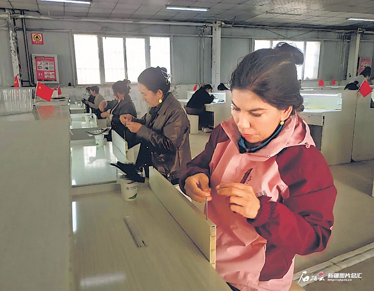 該公司負責人迪麗達爾·克依木說:“這個月我們有個100萬元的訂單,工人正加班加點生產。”