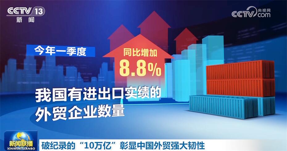 一季度,我國貨物貿易進出口規模歷史同期首次突破10萬億元,增速創6個季度以來新高。一季度進出口令人欣喜的數據彰顯了中國外貿的強大韌性,提振了人們對實現今年經濟增長目標的信心。