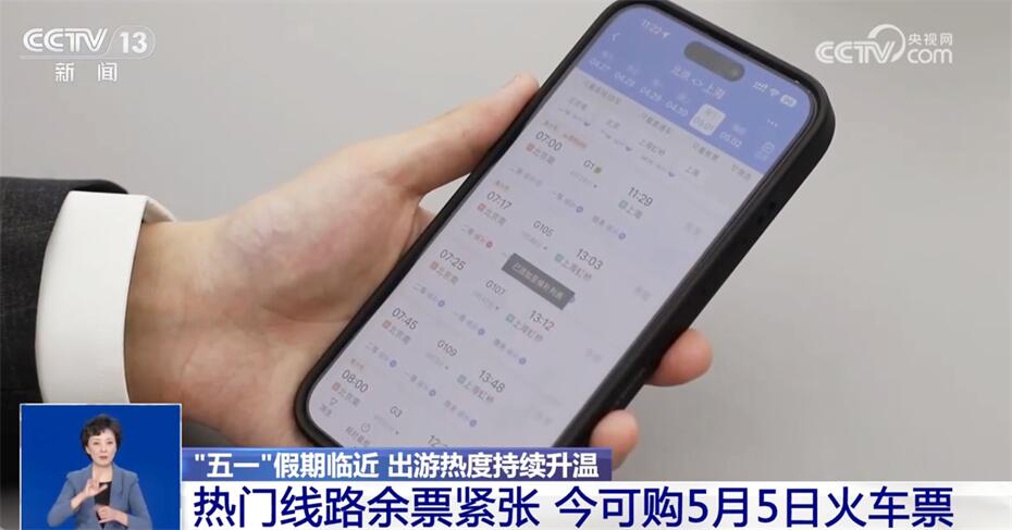 鐵路方面,目前,假期火車票正在火熱銷售,一些熱門線路的假期車票已經出現了余票緊張的情況。目前看,4月30日,北京到青島、大同、西安等方向,上海和杭州到武漢方向的車票基本售罄。而4月21日已經可以購買“五一”假期最后一天也就是5月5日的火車票了,也提醒您及時安排好行程。