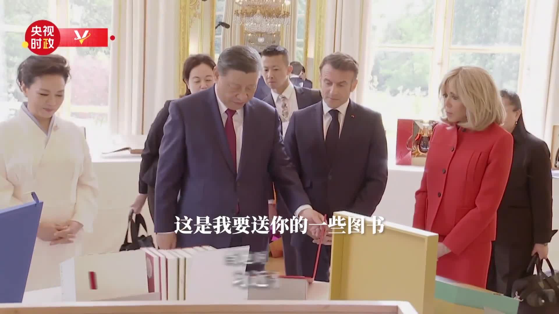 “這是我要送你的一些圖書,都是中國翻譯的法國小說,中文的法國小說?!绷?xí)近平主席走到一排書籍面前,微笑著說。