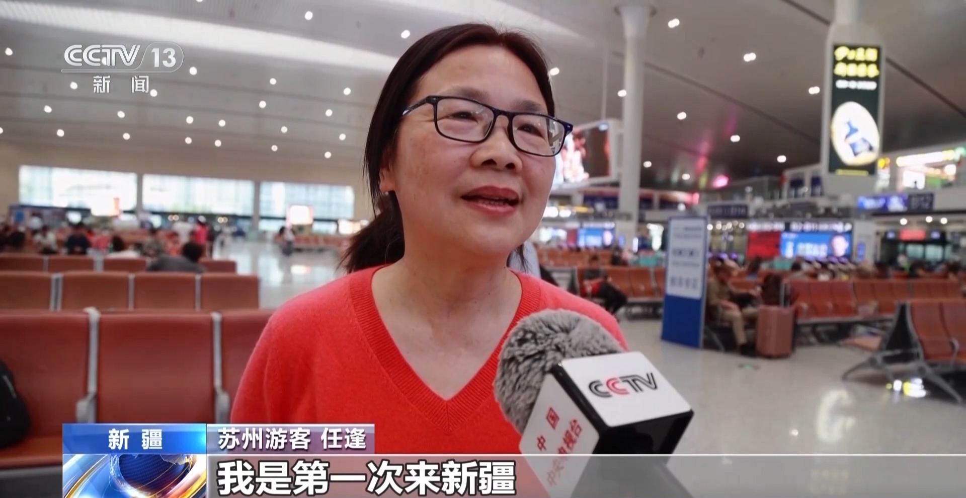 蘇州游客 任逢:我是第一次來新疆,為了這次旅行我們已經考慮了兩三年了,“天山號”能夠帶著我玩遍整個南北疆的旅游景點。這個很方便,我很期待這次旅行。