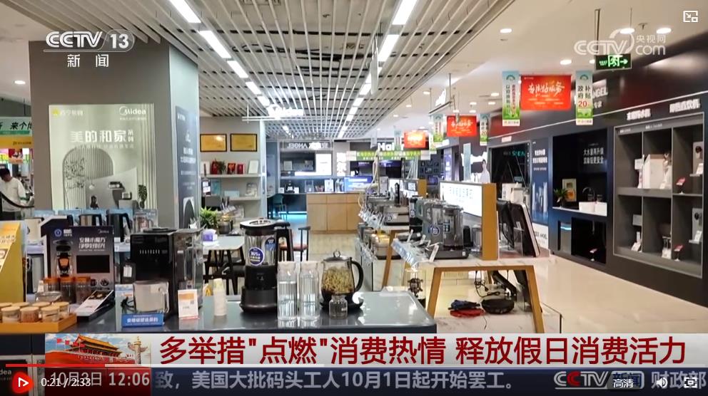 央視網(wǎng)消息:國(guó)慶假期開(kāi)啟,消費(fèi)市場(chǎng)也迎來(lái)了旺季。各地紛紛加大力度滿足節(jié)日市場(chǎng)供給、保障好節(jié)日需求。同時(shí),創(chuàng)新供給方式、推出新的消費(fèi)場(chǎng)景、加大文旅產(chǎn)品供應(yīng),加力推進(jìn)消費(fèi)品以舊換新,進(jìn)一步激活市場(chǎng)。