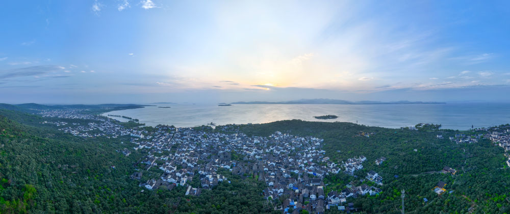 這是在江蘇省蘇州市吳中區(qū)東山鎮(zhèn)太湖畔拍攝的民宿(2024年4月11日攝,無(wú)人機(jī)照片)。