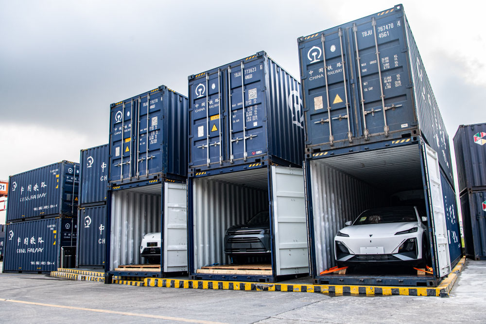 這是2024年4月22日在重慶團結(jié)村中心站拍攝的出口汽車。