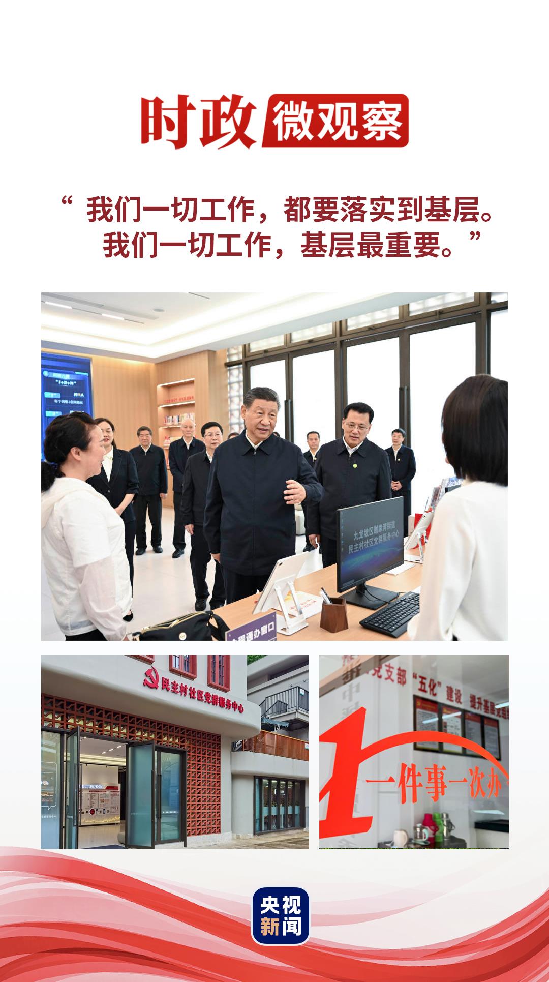 4月22日,正在重慶考察的習(xí)近平總書(shū)記來(lái)到九龍坡區(qū)謝家灣街道民主村社區(qū),走進(jìn)社區(qū)黨群服務(wù)中心,向社區(qū)干部詢問(wèn)這里都開(kāi)展哪些便民服務(wù)、社區(qū)干部待遇怎么樣、平時(shí)工作忙不忙等,詳細(xì)了解近年來(lái)社區(qū)減負(fù)效果。