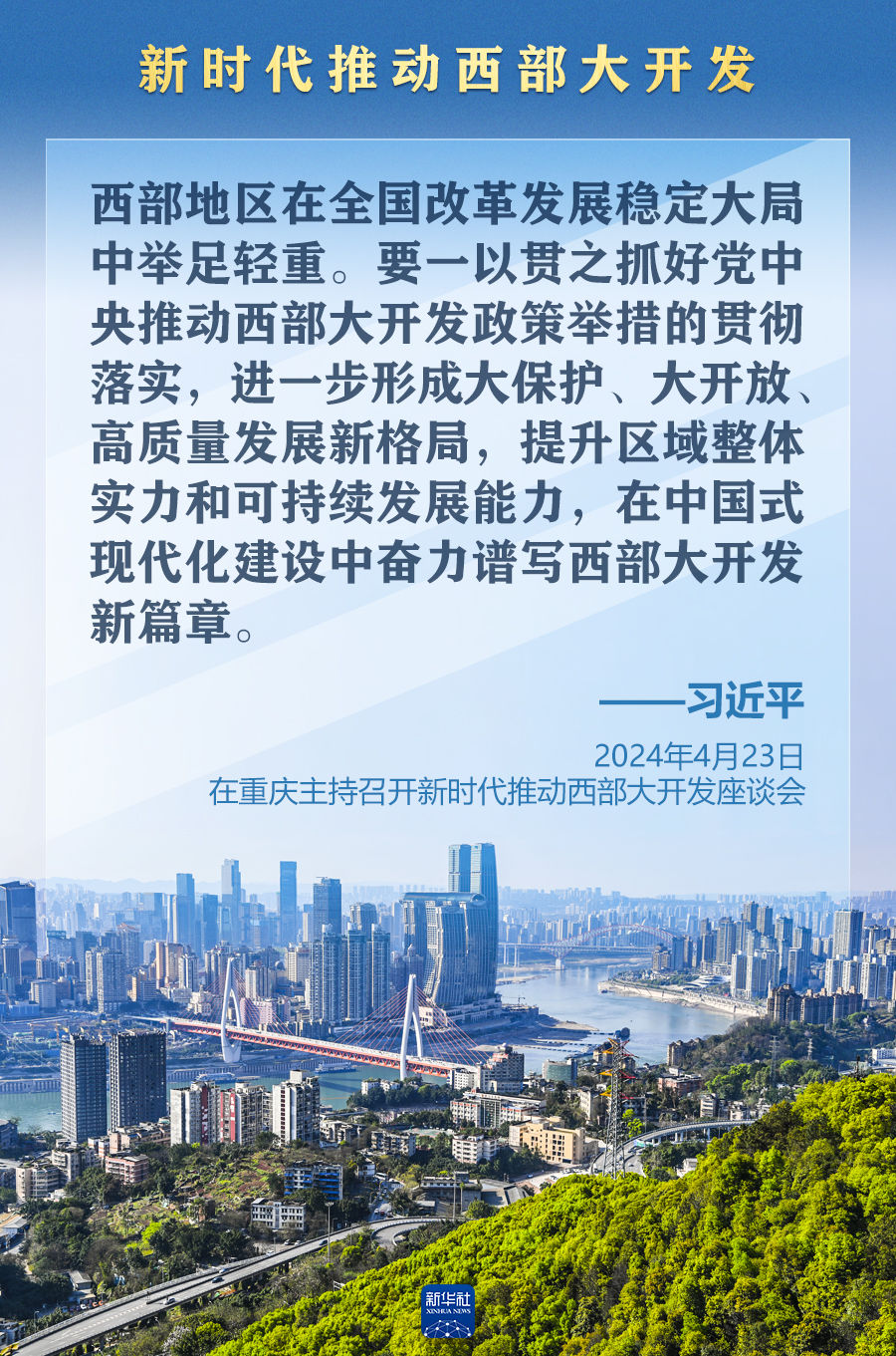 4月23日,習(xí)近平總書記在重慶主持召開新時(shí)代推動(dòng)西部大開發(fā)座談會(huì)并發(fā)表重要講話。