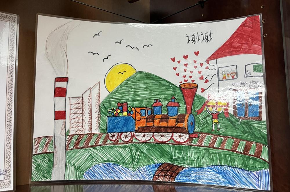 在斯梅戴雷沃鋼廠辦公樓入口處,擺放著一摞廠辦期刊。每一期封底都是一幅鋼廠子弟或當地小學生的畫作。在孩子們眼中,鋼廠色彩斑斕:郁郁蔥蔥的山腳下,色彩鮮亮的火車頭在廠區內穿梭,噴出“小愛心”;孩子們手持氣球,站在鋼廠援建的學校前,腳下開滿鮮花;塞中兩國員工肩并肩站在一起,兩國國旗和兩種文字的“謝謝”排列在一起。