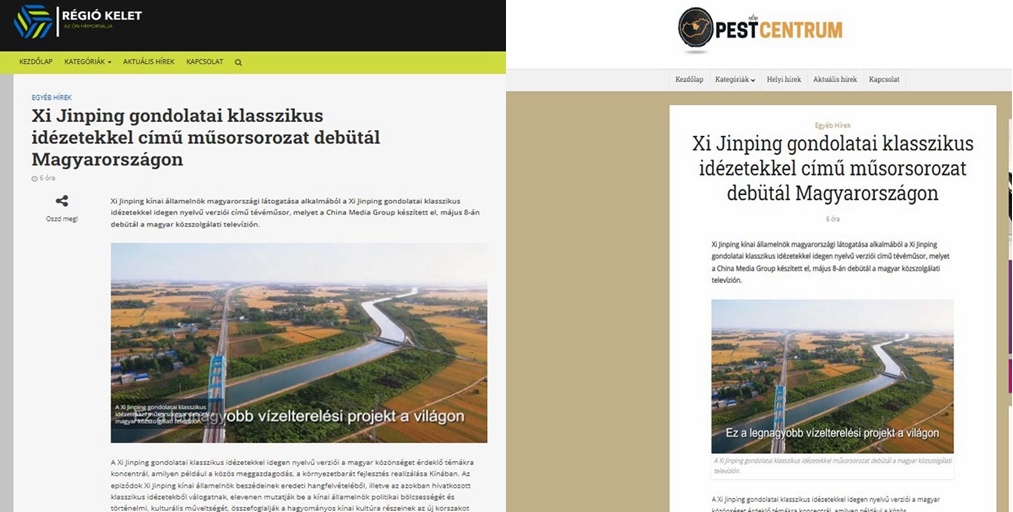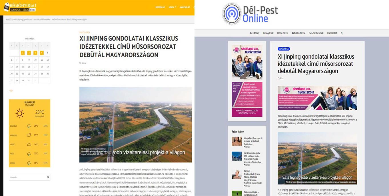 此外,當地時間5月4日,匈牙利東部生活網、匈牙利佩斯中心網、匈牙利西峰網、南佩斯在線網等對《平“語”近人——習近平喜歡的典故》(國際版)即將播出的消息進行了報道。匈牙利東部生活網主要以介紹亞洲以及中東歐地區內容為主,在匈牙利擁有廣泛的受眾群體。匈牙利佩斯中心網是布達佩斯地區最主要的商業媒體網站。