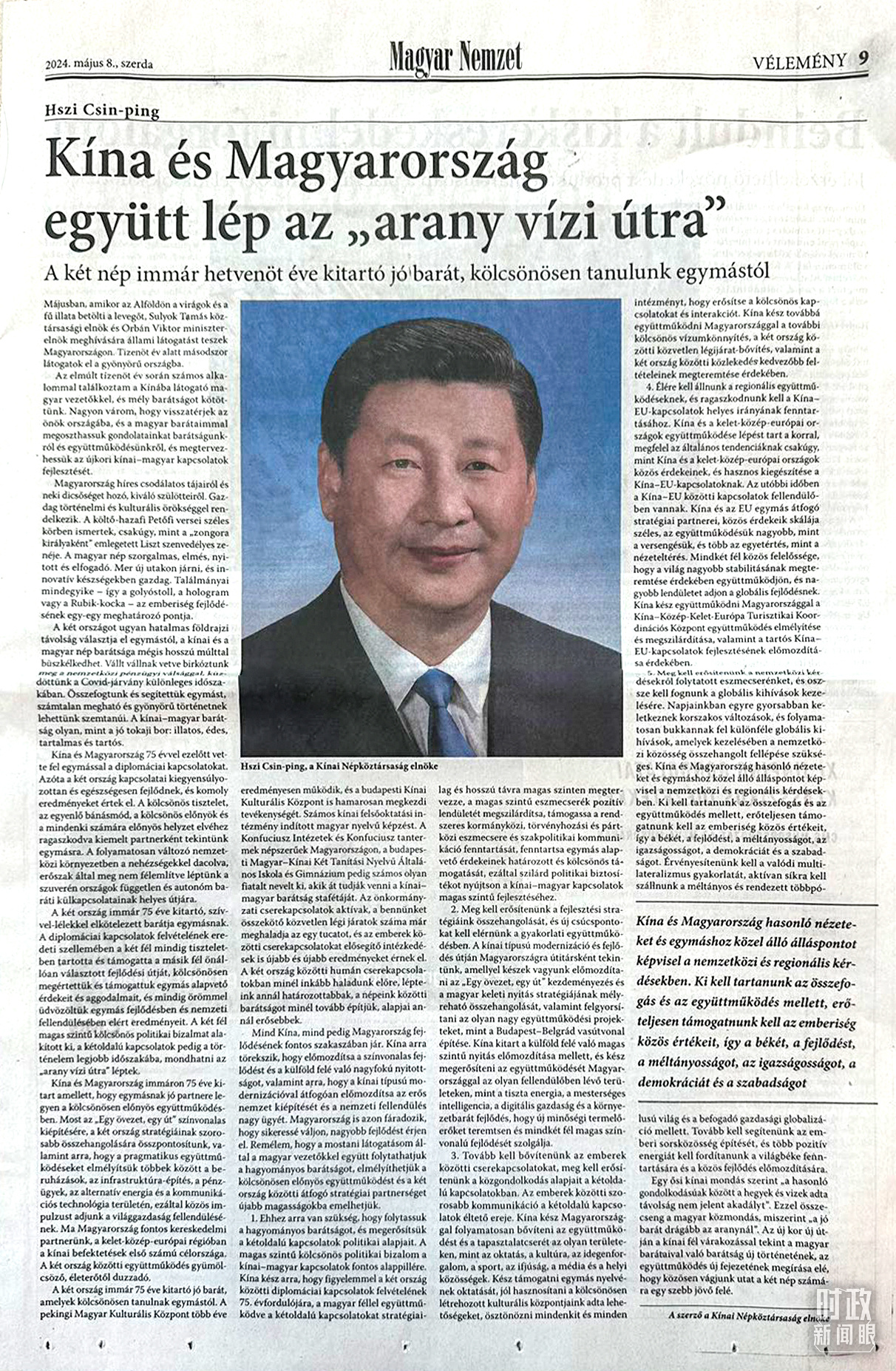 習主席在匈牙利《匈牙利民族報》發表的署名文章。(總臺記者沃龍拍攝)