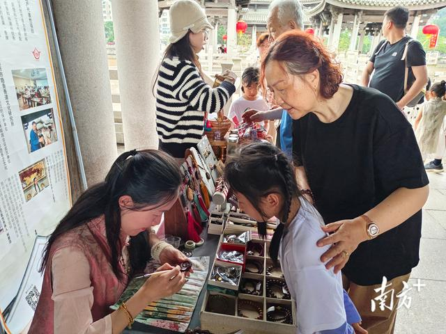 廣濟橋上,“潮玩古城·潮州非遺集市”活動吸引游客體驗。