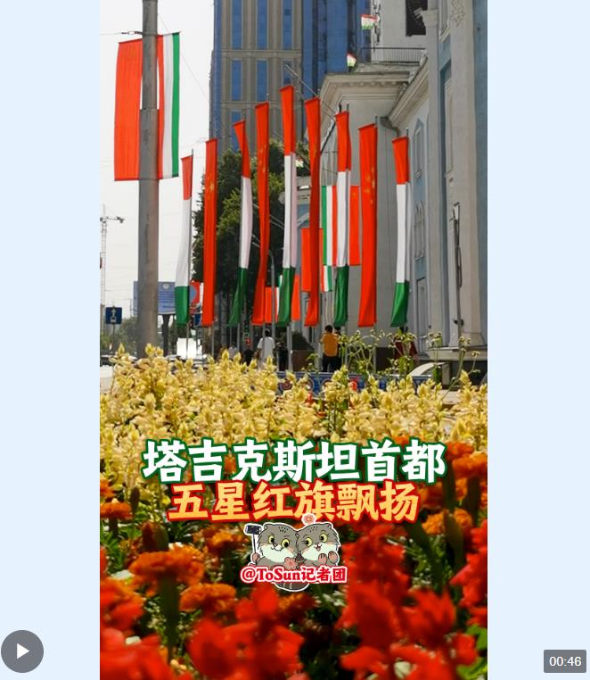 當地時間7月3日下午,塔吉克斯坦首都杜尚別的主要街道都掛上了中塔兩國的國旗,ToSun記者團還在街頭偶遇了一位在孔子學院學習的塔吉克斯坦學生。跟著我們的鏡頭一起去杜尚別看看吧!