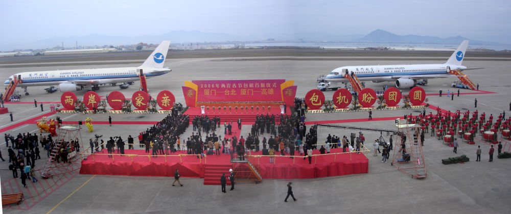 2006年,廈航作為新增廈門航點的唯一運營航空公司,執行了廈門-臺北、廈門-高雄航線的包機任務。這是首航儀式現場。