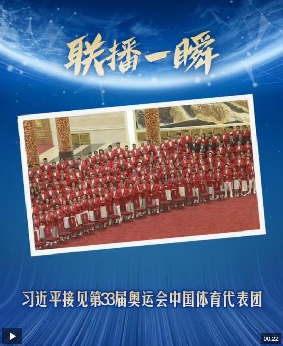 習(xí)近平20日下午在人民大會(huì)堂接見第33屆夏季奧林匹克運(yùn)動(dòng)會(huì)中國(guó)體育代表團(tuán)全體成員。
