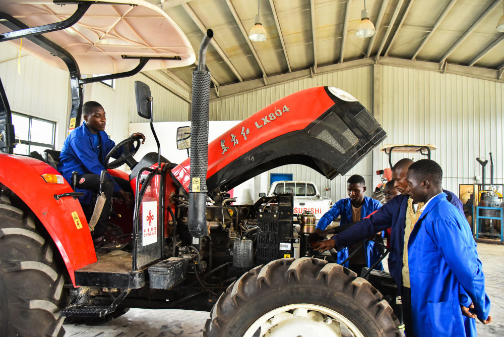 2023年1月12日,學生在喀麥隆亞巴西農業職業技術中學上拖拉機實踐課。亞巴西農業職業技術中學由中方援建,是喀麥隆第一所農業技術學校。新華社發(科普索攝)