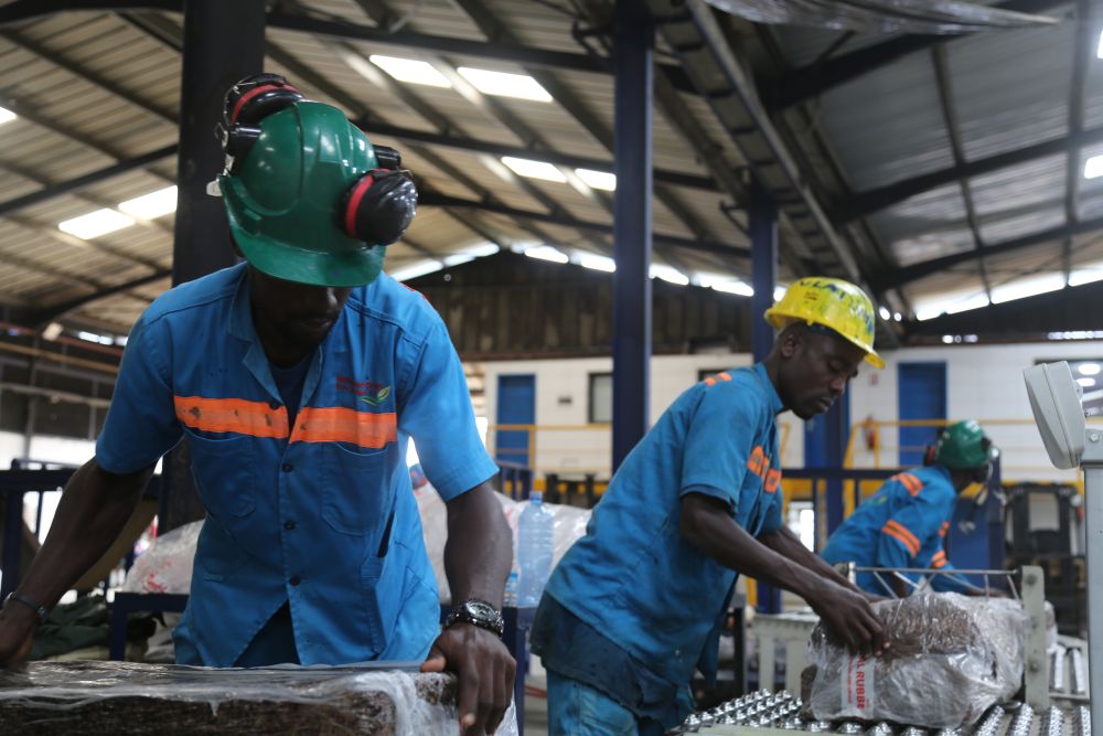2024年6月10日,在科特迪瓦南部城鎮達布郊區,工人們在美蘭橡膠加工廠對成品橡膠進行打包。中國加工廠幫助科特迪瓦橡膠增加產品附加值,提高膠農收入。