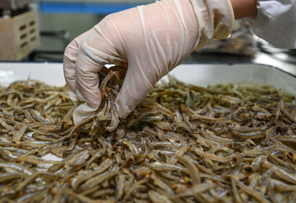 2023年6月28日,在湖南省岳陽市平江高新技術產業園,勁仔食品平江生產基地的化驗員在實驗室對進口鳀魚進行水分檢測。2023年6月,中國首次進口的肯尼亞野生鳀魚產品在第三屆中非經貿博覽會上亮相。近年來非洲對華農產品出口增長迅速。