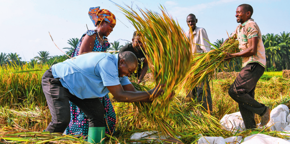 2018 年,中國農業專家組在布隆迪布班扎省吉漢加縣設立首個水稻減貧示范村。圖為當地農戶在稻田里給雜交水稻脫粒(2023年6月20日攝) 韓旭攝 / 本刊