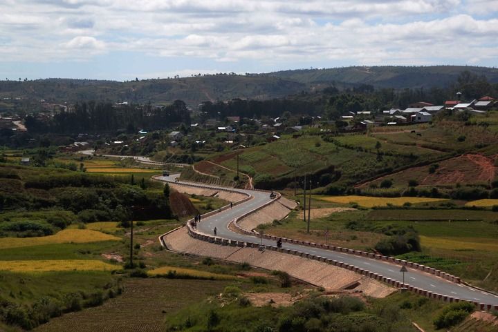 這是2022年5月3日在馬達加斯加首都塔那那利佛郊區拍攝的由中國政府無償援建的“雞蛋路”。 新華社發(西塔卡·拉喬納里松 攝)