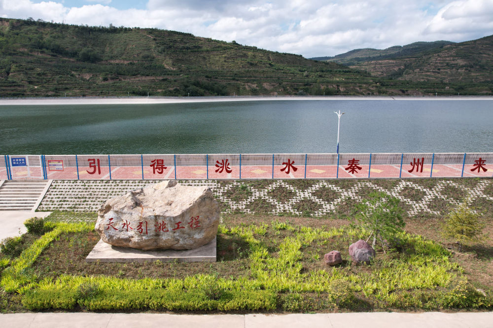 這是近日在天水市秦州區(qū)拍攝的天水市城區(qū)引洮供水工程楊家灣調蓄水池(無人機照片)。新華社記者 范培珅 攝