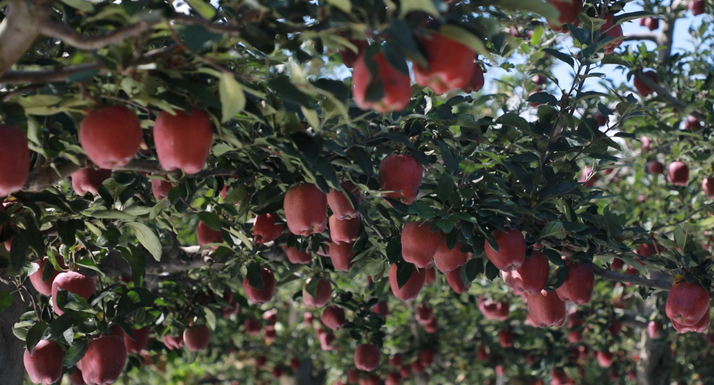 連片的蘋果樹生機勃勃,色澤濃紅、五棱突出、果形高樁的花牛蘋果,綴滿枝頭。每棵樹掛果200多顆,重量達100多斤。正值采摘季節,果農已將成熟蘋果放入筐中,經歷分揀、轉運等流程后,準備銷往各地。