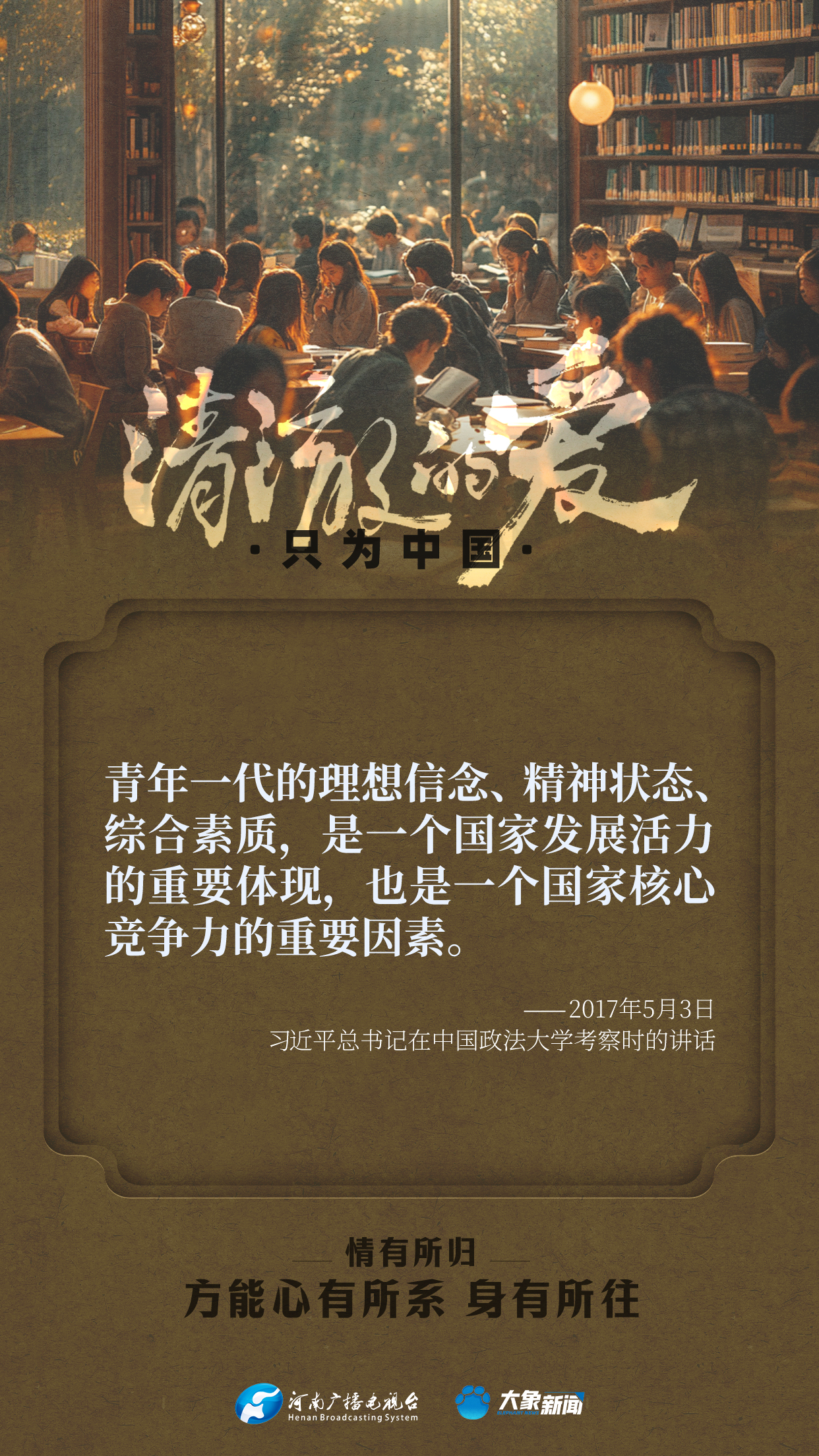 習近平總書記對廣大青年寄予厚望。黨的十八大以來,他多次來到青年中間,同大家談人生、話理想,鼓勵青年人心系祖國,志存高遠,腳踏實地,在奮斗中創造精彩人生,為祖國和人民貢獻青春和力量。