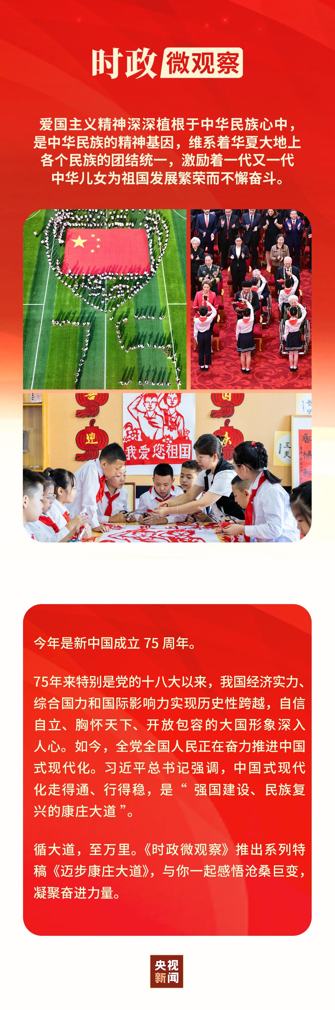 實現中華民族偉大復興的中國夢,是當代中國愛國主義的鮮明主題。新征程上,我們要凝聚起心中的愛國情、強國志,勠力同心、開拓進取,共同譜寫人民共和國更加絢麗精彩的新篇章。