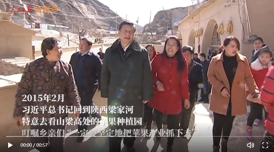 2015年2月,總書記回到陜西梁家河,特意去看山梁高處的蘋果種植園,叮囑鄉親們,“一定要堅定地把蘋果產業抓下去。”此時,聲勢浩大的脫貧攻堅正如火如荼。