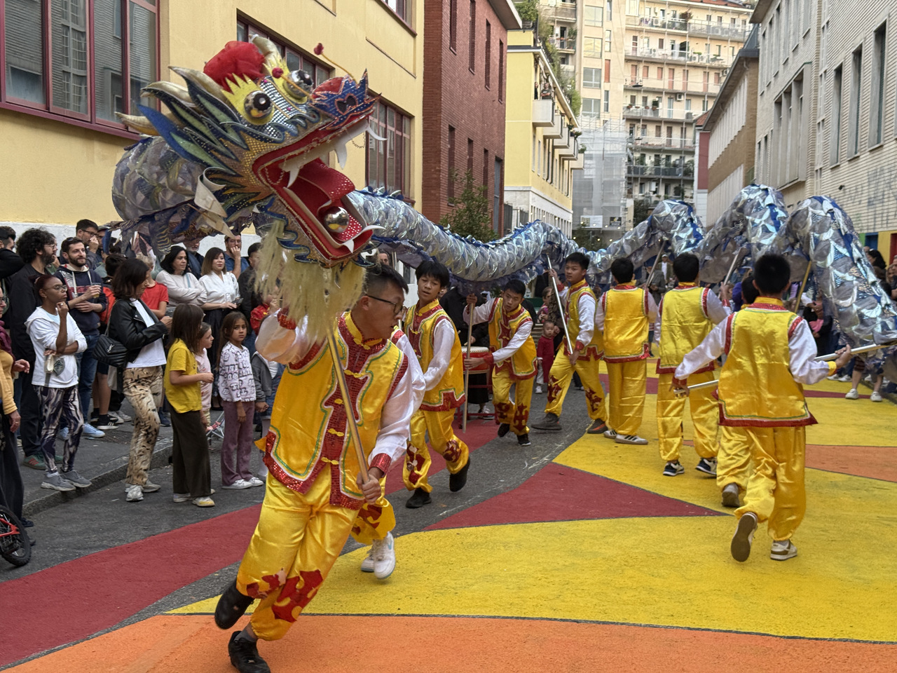 華文學校舞龍表演亮相意大利米蘭街頭 拍友 趙建斌 攝