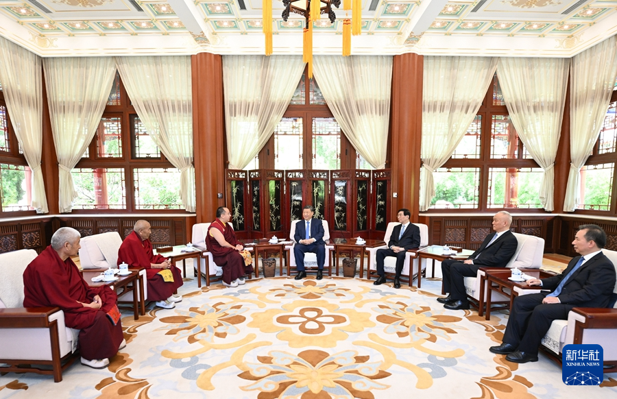 6月6日,中共中央總書記、國家主席、中央軍委主席習近平在北京中南海接受班禪額爾德尼·確吉杰布拜見。新華社記者 燕雁 攝
