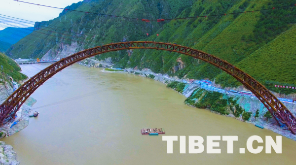 藏木特大橋位于西藏加查縣安饒鎮桑加峽谷內,地處海拔3350米的山地,主橋橫跨雅魯藏布大峽谷,水深66米,大橋采用430米中承式鋼管混凝土拱,拱高112米,是首座跨過雅魯藏布江的鐵路橋梁。