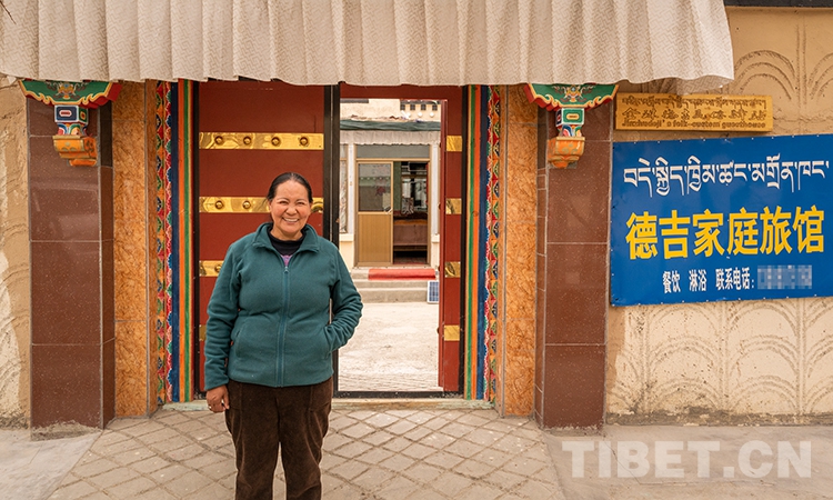 2006年在路邊開設茶館的金珠德吉經常會被游客問到村子里有沒有住宿的地方。“那時候就想著自己開一個家庭旅館,既能為游客提供方便,又能賺到些錢。”從風沙遍布的土坯房變成了如今干凈整潔的藏式二層小樓,金珠德吉這一開就是15年,她的小院也成了游客最愛來的地方。2020年,金珠德吉的收入達到了10萬元。