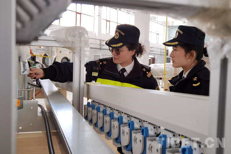圖為拉薩海關派員對一批德國進口洗滌設備開展目的地查驗