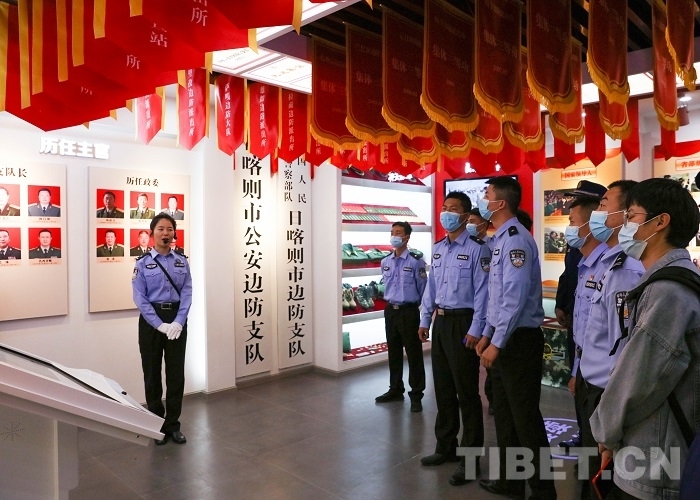 隨后,大家來(lái)到支隊(duì)警史館參觀,警史館分前廳、武警邊防廳、移民管理廳三個(gè)部分,共收集整理各類圖片資料1000余張、實(shí)物30余件,運(yùn)用多種表現(xiàn)手法,客觀地反映了1996年以來(lái)各個(gè)時(shí)期日喀則邊境管理支隊(duì)的重要工作、重大事件、取得的成績(jī)等輝煌奮斗歷程。在講解員的帶領(lǐng)下,全體干部代表認(rèn)真聆聽(tīng),駐足凝望,一件件珍貴的歷史實(shí)物,記錄著日喀則邊境管理支隊(duì)砥礪前行的光輝歷程,一張張生動(dòng)的歷史照片展示著日喀則邊境管理支隊(duì)踐行使命的動(dòng)人瞬間。