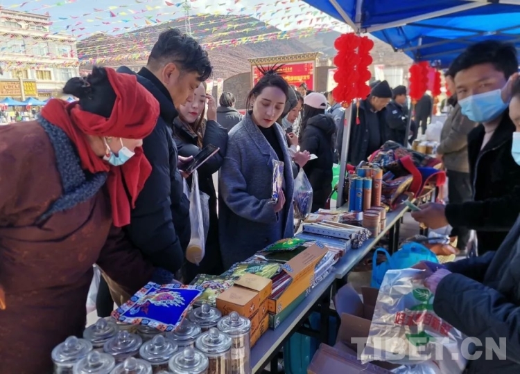 走進年貨節現場,映入眼簾的就是紅紅火火的燈籠和來來往往的人群。來自全縣16個鄉(鎮)的30余家商戶企業都在各自的攤位上忙碌著,藏族服飾、特色美食、地方特產,各色年貨應有盡有,令人目不暇接,還有更具文化屬性的非遺項目唐卡作品的展示,整個現場吆喝聲、砍價聲、嬉笑聲相互交織、此起彼伏,濃濃的年味撲面而來。