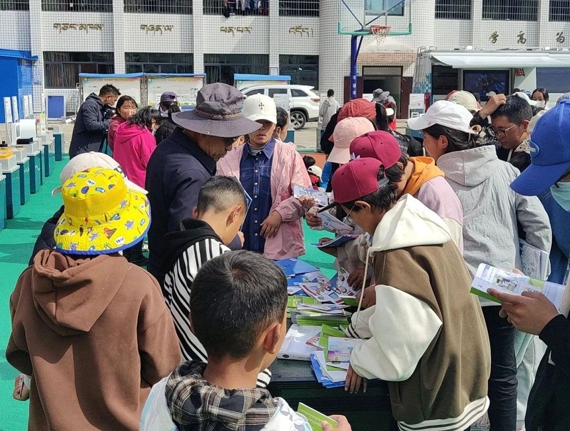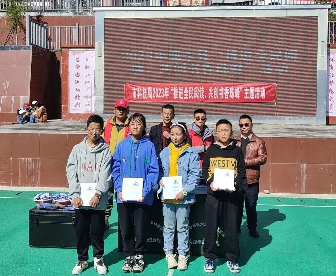 圖為日喀則市科學(xué)技術(shù)協(xié)會(huì)以科普大篷車(chē)進(jìn)校園活動(dòng)為契機(jī),聯(lián)合亞?wèn)|縣委宣傳部、縣科技局在縣中學(xué)舉辦的“推進(jìn)全民閱讀 共創(chuàng)書(shū)香珠峰”主題宣傳活動(dòng)現(xiàn)場(chǎng)