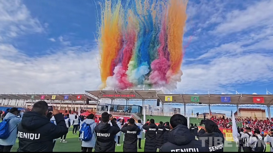 中國西藏網訊 9月26日,在慶祝新中國75周年華誕之際,以“七十五載逢盛世 全民健身共筑體育強國夢”為主題的2024年那曲市“體彩杯”足球比賽在西藏自治區那曲市全民健身活動場開幕。