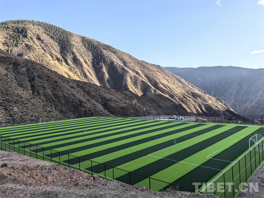 圖為西藏自治區昌都市洛隆縣馬利鎮如今煥然一新的足球場