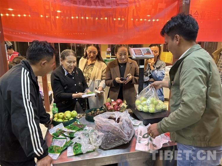 圖為西藏昌都市洛隆縣白達鄉白托村組織村民們統一到縣城銷售特色產品