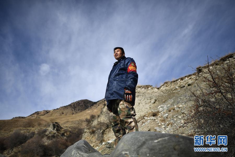 12月8日,祁連山國家公園扎麻什管護站生態管護員索安拉什旦在巡護途中。新華社記者 張宏祥 攝