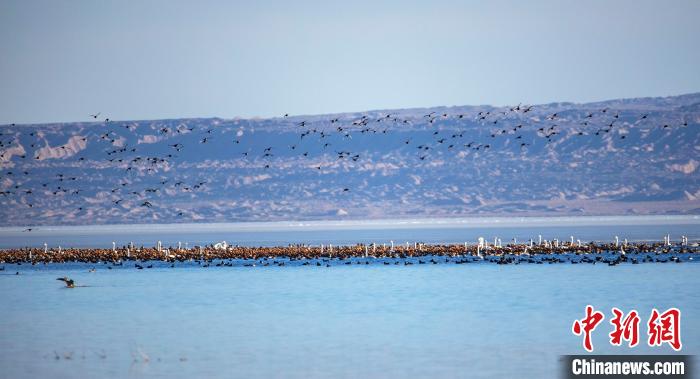 圖為上萬只野生鳥類在湖中游蕩。烏席勒 攝