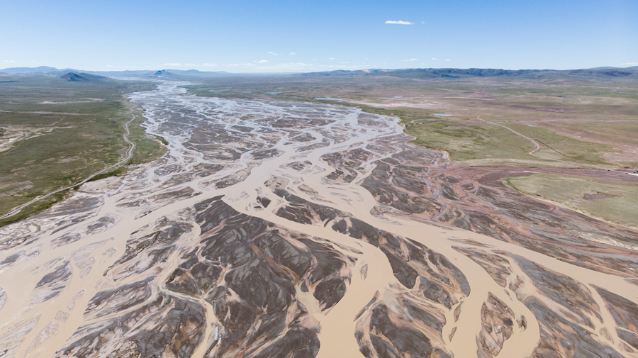 這是2019年8月9日拍攝到的位于青海省格爾木市唐古拉山鎮的長江正源沱沱河的照片(無人機照片)。新華社記者 吳剛 攝